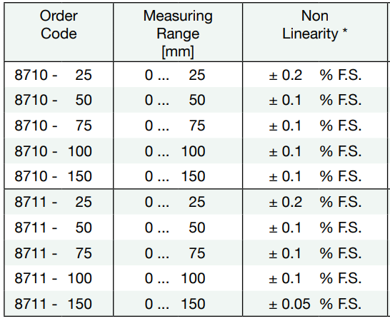 8710/8711 Potentiometric Displacement Sensors