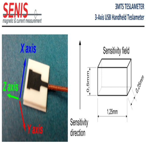 The 3NTA2 Nanoteslameter is a high performance magnetic field measuring instrument based on the high magnetic resolution Anisotropic Magneto Resistance (AMR) sensors, for measurement of the magnetic field from nT (nano Tesla) up to 100µT (1 gauss). SENIS provides 1-, 2-, or 3-axisNanoteslameters that include one compact AMR probe with very high spatial resolution (few millimeters), an electronic module for signal conditioning and user-friendly LabVIEW software for data acquisition and visualization.