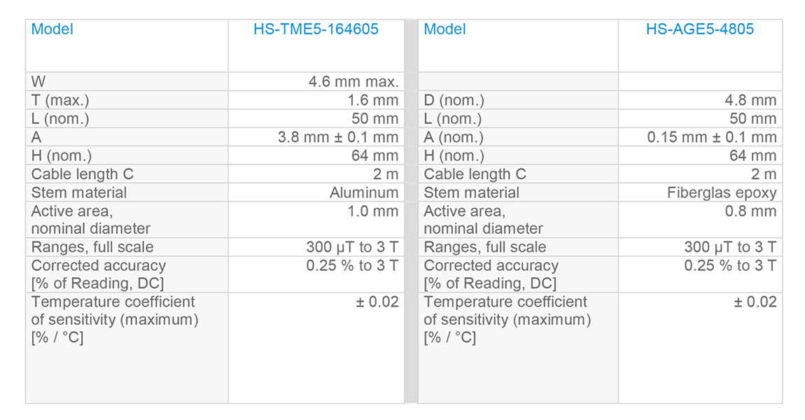 Standard Hall Probes for FH54 and FH55