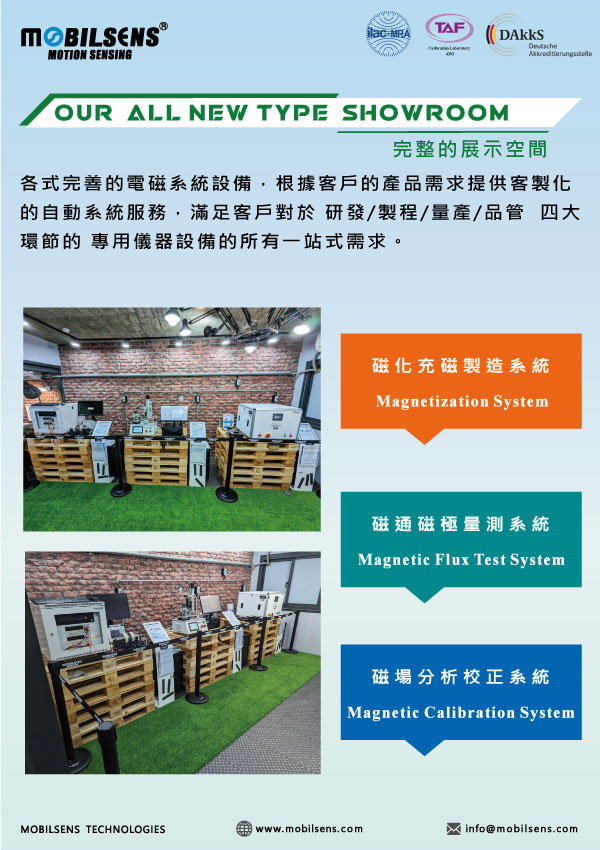 創磁微測 股份有限公司(MOBILSENS Technology Inc. )是一家由專精磁性材料領域所組成的專業磁性技術解決方案 工程顧問及統包(Turnkey Solution)服務公司、磁化充磁製造系統、磁通磁極量測系統、磁場分析校正系統 的設計、製造以及銷售 同時 技術合作與歐美大廠協同開發 電磁模組 零件/設備/系統。